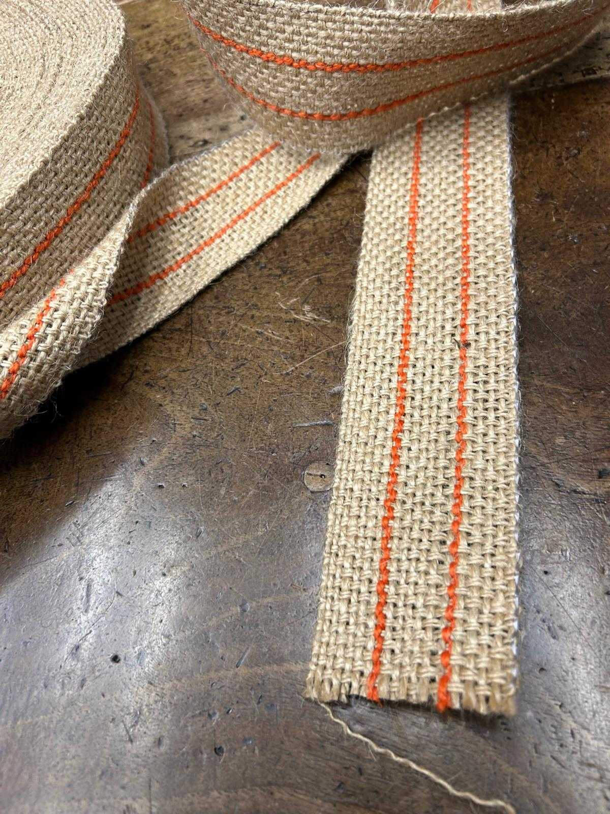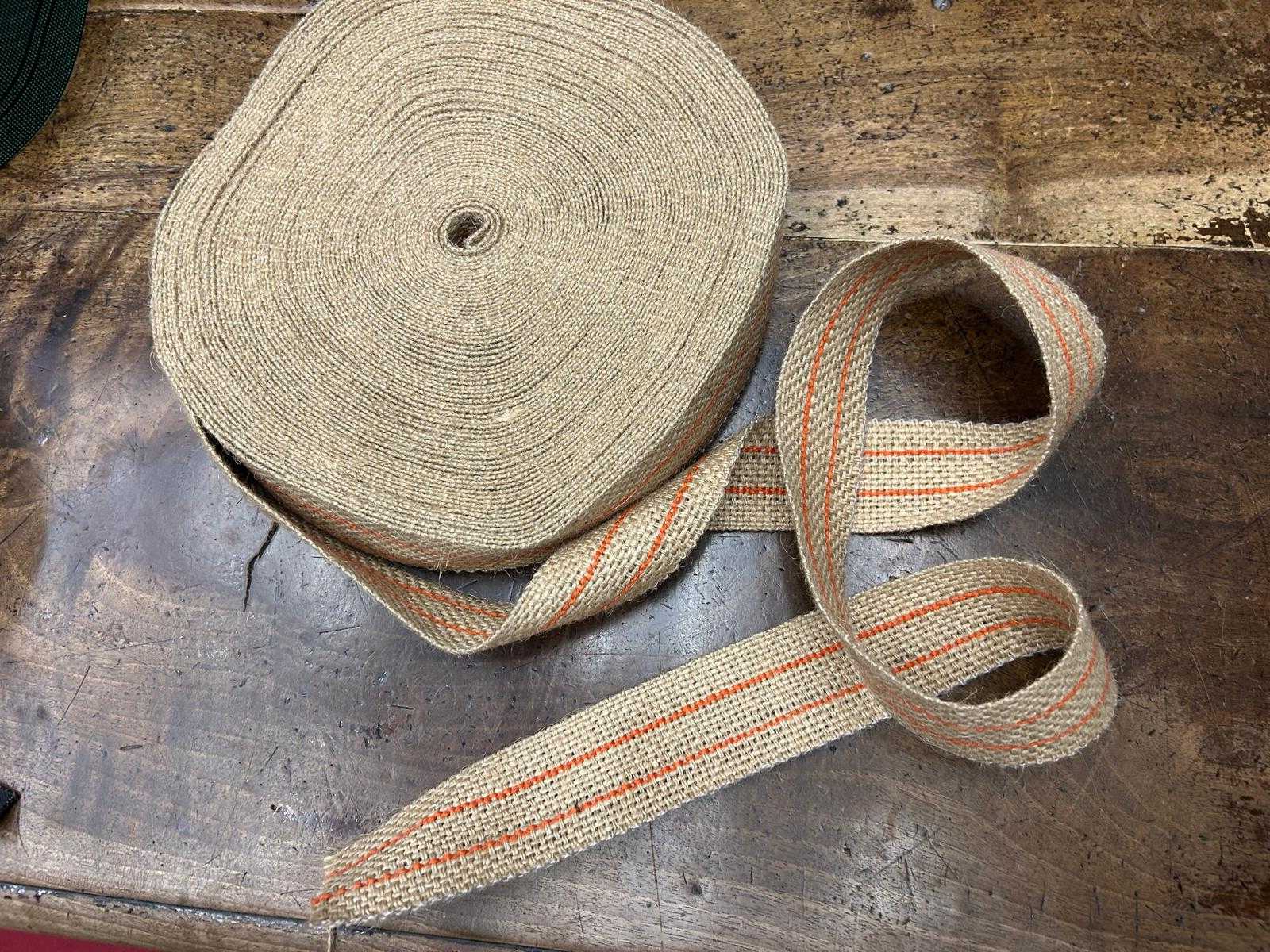 La cincha de yute de 6 centímetros es el material clásico indispensable para trabajos de tapicería tradicional que requieren mayor precisión. Su formato ligeramente más estrecho la convierte en la opción idónea para entrelazar bastidores de menor tamaño o con formas curvas pronunciadas.