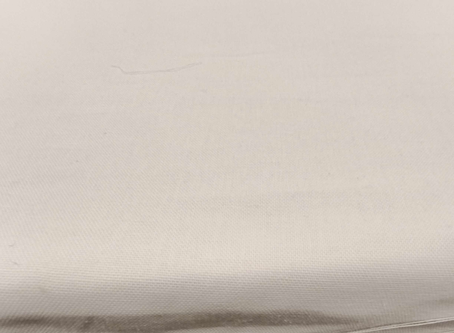 Tejido de mezcla precisa que combina la textura rústica del lino con la practicidad del poliéster, en un blanco luminoso y limpio.