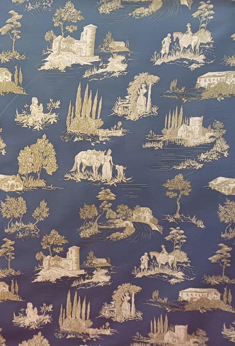 Esta sofisticada tela Toule Azul es una pieza textil imprescindible para quienes buscan una decoración con carácter y elegancia clásica. Confeccionada íntegramente en algodón 100% de alta calidad, destaca por su detallado estampado de escenas campestres y pastorales que evocan la estética tradicional europea. El diseño, que combina figuras, animales y paisajes en tonos suaves sobre un fondo azul profundo, aporta una distinción inmediata a cualquier estancia. Gracias a su gran ancho de 280 cm, es una tela extremadamente funcional para proyectos de decoración integral, permitiendo crear cortinas de gran caída sin costuras visibles, colchas para camas grandes o mantelerías espectaculares. Al ser una loneta de algodón natural, garantiza una excelente transpirabilidad, un tacto agradable y una resistencia superior al uso diario y los lavados. Es la elección perfecta para transformar salones o dormitorios con un estilo rústico refinado y una atmósfera acogedora y señorial.