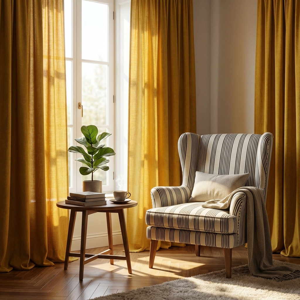 Gracias a su generoso ancho de 157 cm y su gran resistencia, es una tela todoterreno perfecta tanto para tapizar piezas con mucho uso como para confeccionar cortinas con cuerpo y caída natural.