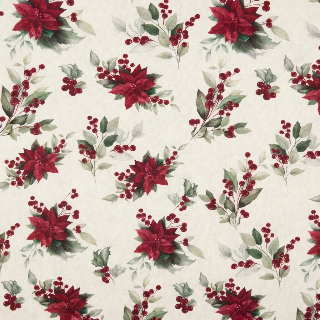¡Prepara tu hogar para las fiestas! Esta Tela de Navidad con diseño de flor de pascua es perfecta para crear un ambiente mágico y acogedor.